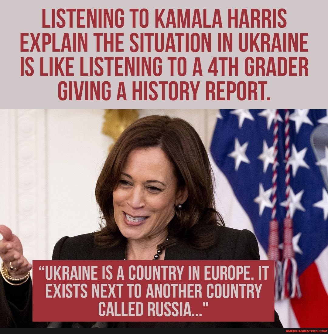 Kamala Harris mocked for trying to explain Russia-Ukraine crisis Vice President Kamala Harris has been roasted online for her "child-like" explanation of the Russia and Ukraine war. "So, Ukraine is a country in Europe...