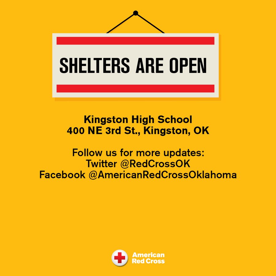 Oklahoma Blood Institute supports Ukraine through blood ... KINGSTON, Okla. — The American Red Cross is helping the victims of the tornado in Kingston. The organization still has a shelter open at the Kingston High School Multi-Purpose Center at 400 Northeast 23rd Street in Kingston. In a statement, the American Red Cross said that alongside their community...