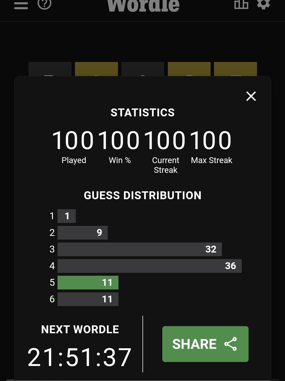 Today’s Wordle answer #309 (with hints) Sunday April 24 ... Apr 24, 2022 · Below are the hints, tips, clues, and the solution for today's Wordle answer #309, Sunday, April 24. Wordle April 24 hint . First up, the riddle: A section of … Wordle 306 word of the day, April 21. It is a chemical ... Tip #1: While playing Wordle, try to use letters that are common. The most common letters in the English language are e, t, a, i, o, n, s, h, and r. Try using these in the first few attempts. Tip #2: Don't waste your attempts on words that have a letter you've already eliminated, or letters in a position that they cannot be in. Wordle 308: April 23, 2022 Hints & Answer | Screen Rant EDITOR'S NOTE: This article is for Wordle answer #308; the April 24th Wordle answer is available now.. April 23rd brings another Wordle word into the world, and today's answer could stump a few players out there. Wordle is a simple word guessing game that gained popularity with its simple gameplay, once-a-day nature, and excellent social media sharing ability. Wordle 306 Answer Today: Wordle Solution For April 21 The answer to today's Wordle (Wordle 306, April 21) is OXIDE, which is a binary compound of oxygen with another element or group. WORDLE ANSWERS FOR THE PAST WEEK. The Wordle answer for Wordle 305 for April 20 was CARGO. Wordle 304 answer for April 19 was FOYER. The Wordle 303 answer for April 18 was AMPLE, meaning enough or more than enough.